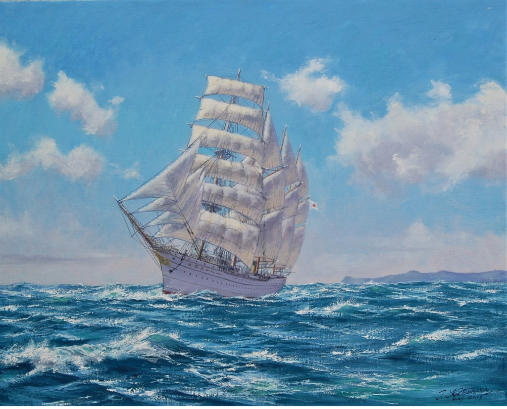 短大時代の同窓生「朽原 彪(くつはら たけし)」さんの作品です。過去に福岡美術館などで展示会を開いてました。海洋画が得意で趣味でヨットにも乗ってました。本業は機械の設計者です。